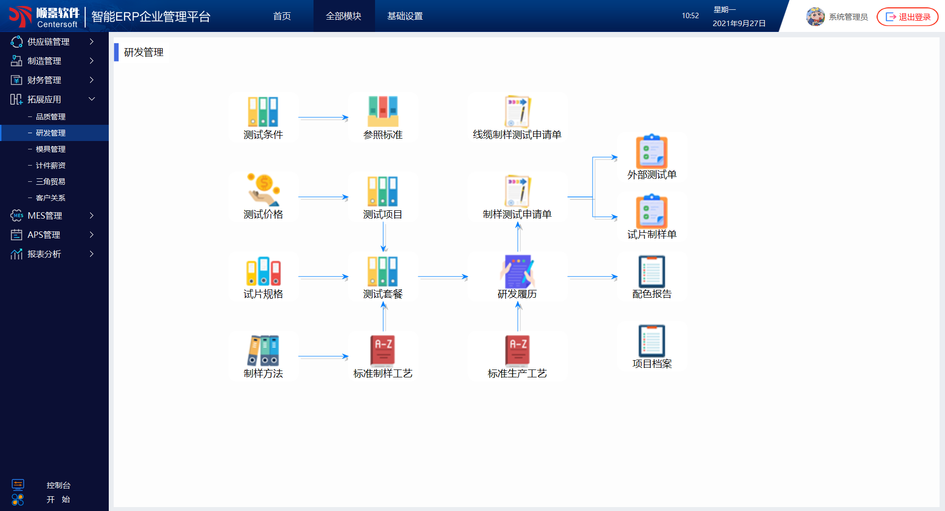 顺景S9 ERP对于改性塑料工厂的配方研发过程进行了全程管理,从发起配方,到参与实验的配方,配方轮次、优选配方、终审配方,以及制样工艺、试片工艺、测试套餐,都进行了记录和管理,这为研发部门提供了详尽的研发履历查询,并累积形成研发配方库、生产工艺库。